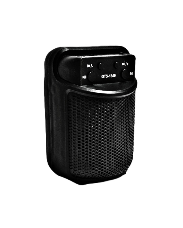 اسپیکر شارژی با بلوتوث مدل GTS-1349 با قابلیت پخش فایل های صوتی با فرمت mp3 از طریق فلش مموری و کارت حافظه TF را می توان بعنوان یک اسپیکر قابل حمل در سفر و یا در منزل و محل کار استفاده کرد . دستگاه از یک باتری شارژی لیتیوم یون بهره می برد و با شارژ در مدت زمان تقریبی 2 ساعت بطور کامل شارژ می شود . همچین این اسپیکر از رادیو FM با قابلیت انتخاب ایستگاههای رادیویی به روش دیجیتال و با فشردن یک دکمه صورت می گیرد .قطر بلندگوی دستگاه 3 اینچ و یا 7.5 سانتیمتر است و صدای خروجی آن در حدود 3 وات واقعی قدرت دارد . با اتصال دستگاه به موبایل از طریق بلوتوث می توان فایل های صوتی را ازدستگاه پخش کرد .